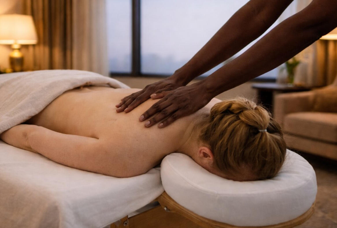 Professional in-room massage delivered in the comfort of your hotel suite or private residence.Treatments are designed to ease travel fatigue, release tension and restore calm after long journeys or demanding schedules.Same-day hotel bookings may be available depending on availability.